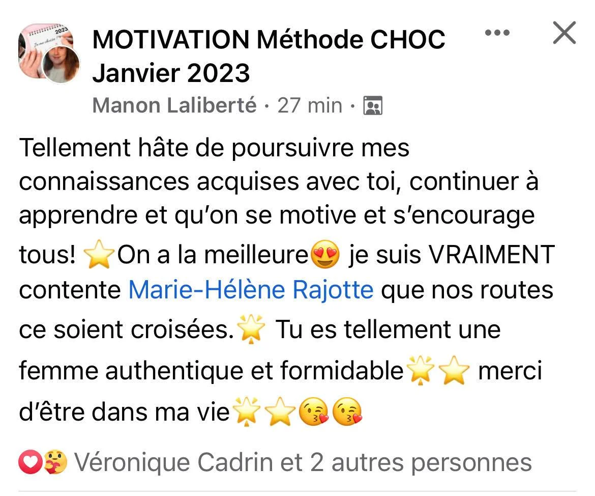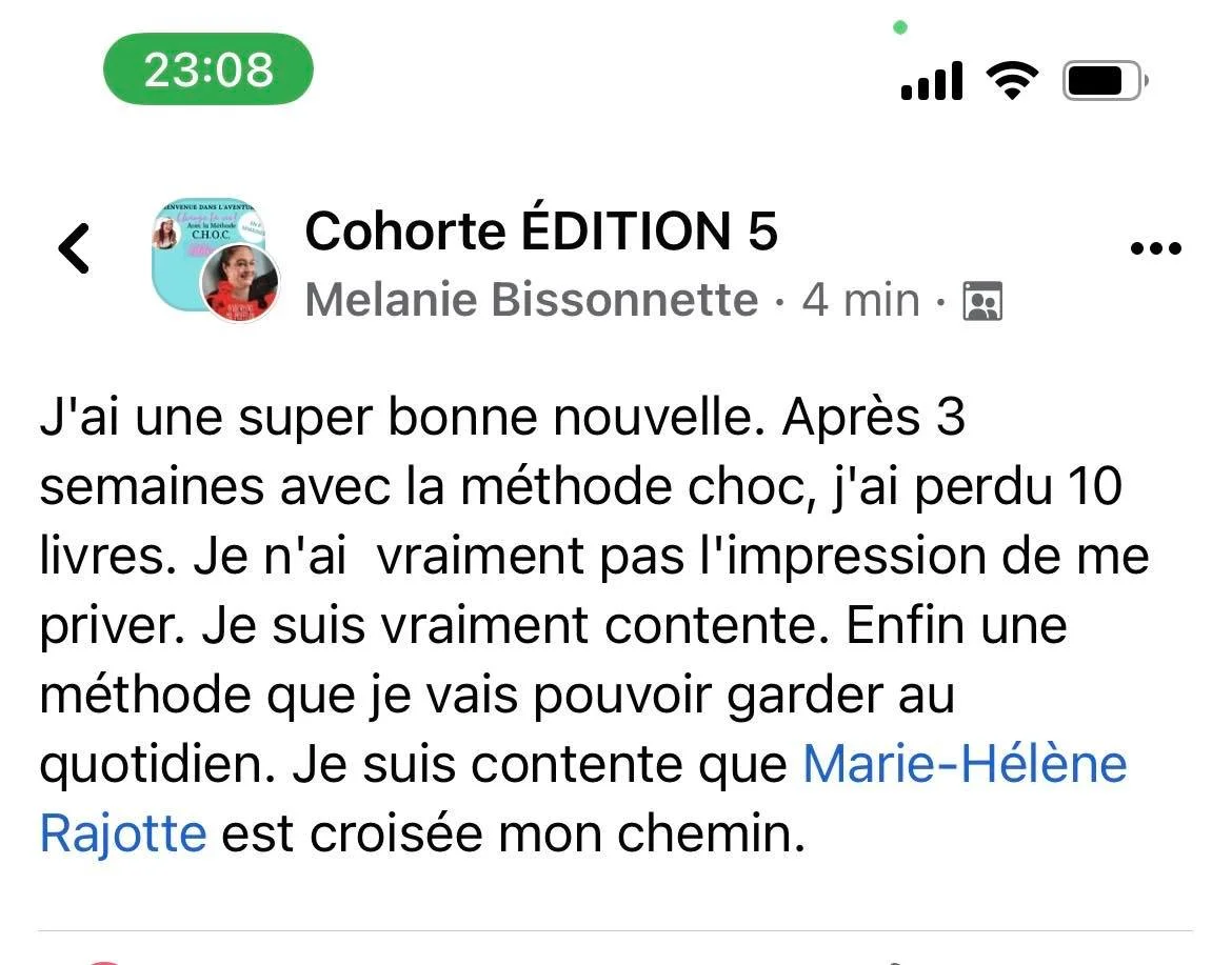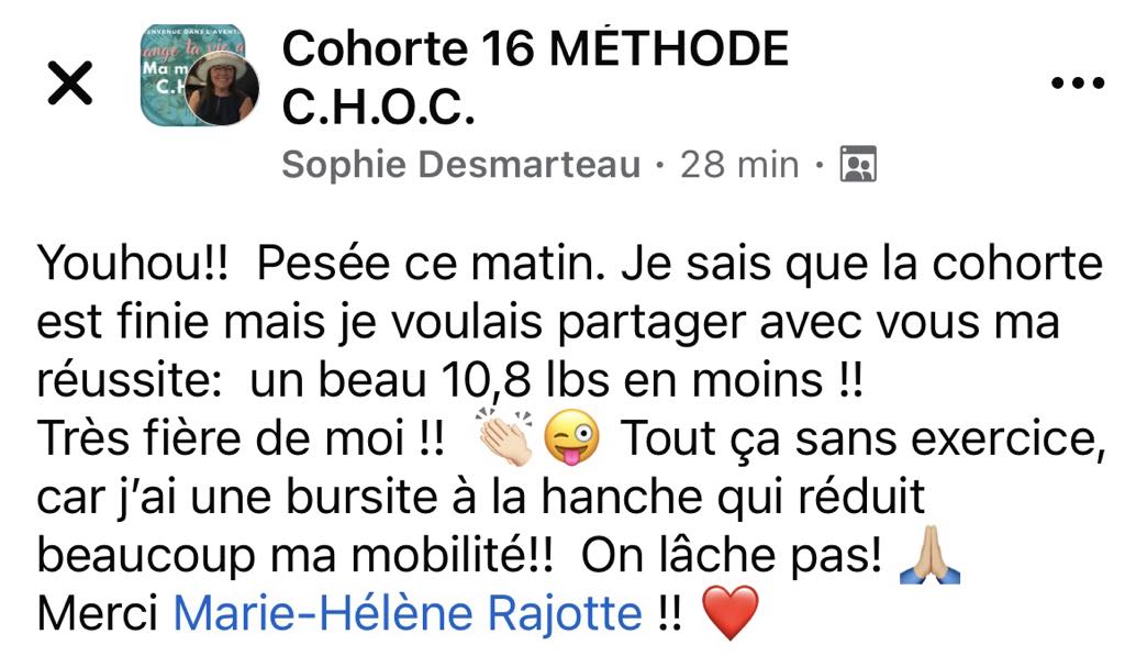 Bien sûr! L'aventure Méthode C.H.O.C peut facilement se jumeler avec n'importe quel autre procédé de perte de poids. Si tu utilises un plan d'entraînement précis, par exemple, tes résultats seront multipliés! *Si tu as une alimentation précise, réfère-toi à la question suivante.